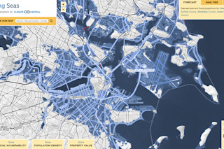 A screenshot from an interactive tool showing what Boston would look like with the 10 feet of sea level rise that would occur if the entire West Antarctic Ice Sheet were to disintegrate. (Source: Climate Central) See a correction and update below. May 13 7:15 p.m. MDT | If you read ImaGeo regularly, you may have seen my post a couple of weeks ago describing evidence that part of the West Antarctic Ice Sheet may be breaking up. Yesterday, two additional studies were made public. One was led by Eric Rignot, a glaciologist at the University of California, Irvine, who had this to say at a NASA press conference: “Today we present observational evidence that a large sector of the West Antarctic ice sheet has gone into irreversible retreat. It has passed the point of no return.” The likely cause: human-caused warming of the climate system. | Update: I'm doing further reporting on this for a future post. Among other things, I'm looking at the role that natural variation of the climate system, and other factors, may be playing. More on that soon. | The paper by Rignot and his colleagues, which examines the behavior of six West Antarctic glaciers that empty into a large indentation in the coast called the Amundsen Sea Embayment, has been accepted for publication in the journal Geophysical Research Letters. (Click here for a press release about the paper from the American Geophysical Union, publisher of the journal.) Ian Joughin, a glaciologist at the University of Washington's Applied Physics Laboratory, was lead author on the second study, which will appear in the May 16th issue of the journal Science. "There's been a lot of speculation about the stability of marine ice sheets, and many scientists suspected that this kind of behavior is under way," he says. "This study provides a more quantitative idea of the rates at which the collapse could take place." The sort of (but not really) good news: Joughin's study suggests that while the early stages of what it refers to as "collapse" may have begun, the rapid stage of collapse would not begin until at least 200 years from now, and possibly more than a thousand years down the road, depending on the warming assumptions made. full disappearance of one of the six glaciers, the Thwaites Glacier, could take at least 200 years. My colleague Andrew Revkin argues that given this time frame, use of the word "collapse" in this context, as some news outlets have done (for example, here), is a bit "overwrought." I get the point: On a human timescale, 200 years or more for the start of rapid disintegration is a very long time indeed. But on a geologic timescale, it is the blink of an eye. And that's important to keep in mind too — that in a blazing flash, geologically speaking, we humans are managing to remake the life support systems of our entire planet. This is why I think today's news will may eventually be seen as having historic significance. Another key fact to keep in mind about the study by Joughin and his colleagues: Thwaites is a linchpin for the rest of the West Antarctic Ice Sheet, and its disappearance would likely trigger most if not all of the ice sheet to break up over a long period and flow into the sea. That would raise sea level by more than 10 feet. The screenshot at the top of this post, from an excellent interactive mapping tool at Climate Central, shows what Boston would look like if the water were to come up that much. Here's what south Florida would look like like: