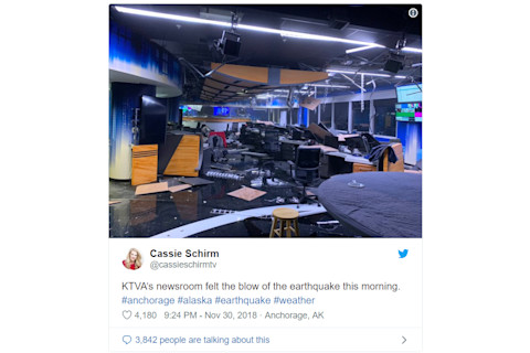 Images of some of the damage in Anchroage include the newsroom for KTVA:
