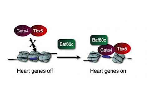 Baf60c's is a doorman that allows the two executive proteins to do their work. It repackages DNA to expose specific genes for activation. Takeuchi and Bruneau showed that only in its presence could Gata4 stick to the DNA of two important heart-related genes. Takeuchi and Bruneau thinks that focusing on Baf60c was the key to their breakthrough. Gata4 can kick-start the sequence of events that produces heart cells and Tbx5 finishes things off. But Baf60c - the doorman protein - is needed to allow the other two to do their job in the first place.