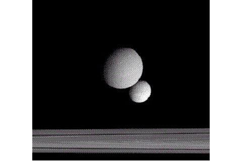 Now, the trashing: THIS EMAIL IS NOT TRUE. It's baloney, wrong, a lie, a con, a hoax, a joke, a falsehood. Now, the specifics: Oh, just go here and read about the last time I debunked this. Or the time before that. Or the time before that, or before that, or the original time back in 2000 and freakin' 3. Criminy. Look folks, Mars is on the other side of the Sun right now. On the date indicated in the email (Aug. 27), it'll be 360 million kilometers (about 215 million miles) from Earth. At its closest, Mars gets about 56 million kilometers (35 million miles) from the Earth, so this email is way, way off. Once again, like all the others before it (and all the ones to come, no doubt), they just keep replacing the date from last year's hoax with the current date. In this version, though, there are two new things that I love for their ever-increasing dumbosity. One is that the term is "culminate", not "cultivate". We're not reaping Mars. The other is the attached picture. It's not Mars and the Moon. It's two moons of Saturn. See the weird band shape along the bottom of the picture? Those are Saturn's rings! This picture was taken by Cassini, the spacecraft orbiting the ringed giant world, currently well over 1.5 billion kilometers away. So once again the bar has been lowered by email hoaxers. And still, I have to wonder, how many people will be fooled by it? Tip o' the spam filter to BABloggee David Roberts for being the first to send this to me.