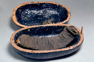 Researchers from the University of Bristol and American University in Cairo tested four mummified foodstuffs from the Cairo Museum and British Museum. They compared the chemical compositions of the balms on the foodstuffs with those of known balms used on human and animal mummies, and found that preparations varied over time. One sample they analyzed was a calf mummy from the tomb of Isetemkheb D of the 21st Dynasty, circa 1070 to 845 B.C. The mummified calf had a mixture of fatty acids on the external bandages, but none of which came into contact with the meat itself. This animal fat, therefore, likely was a balm used to preserve the mummy.