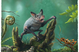 New fossil find Vulcanops hails from New Zealand, home of burrowing bats including the now-extinct Mystacina robusta, shown here in an artist rendering. (Credit Gavin Mouldey) Where might you expect to find fossils of a giant burrowing bat, three times bigger than today's average bat? Why, in St. Bathans, New Zealand, of course. Vulcanops jennyworthyae, which lived more than 15 million years ago, tells a fascinating story of a lost world. No offense to Jenny Worthy, the team member honored in the new fossil bat's species name, but I'm going to call this little beauty by its genus name, Vulcanops, coincidentally the first new bat genus discovered in New Zealand for well over a century. Vulcanops' bones and teeth were found in sediment that is dated to the earlier half of the Miocene Epoch, more specifically, about 16 to 19 million years ago. It was found in Central Otago, a beautiful region of New Zealand's South Island that will look very familiar if you've ever watched any of the Lord of the Rings or Hobbit movies. The specific corner of Otago where this bat once flew and scurried around the ground, was more recently bustling with gold mining activity in the late 19th century. That's when St. Bathans sprung up, including the iconic Vulcan Hotel, after which Vulcanops is named.