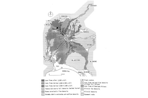 Map of the volcanic deposits of Mt. Fuji, Japan.