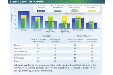 The U.S. National Academies published a new report which finds no gender bias in the faculty hiring process. According to the data, women are being hired and promoted with equal access to resources once we make it that far. Still, there's no doubt it's the journey that's most arduous. Here are some interesting figures from the latest issues of Science: