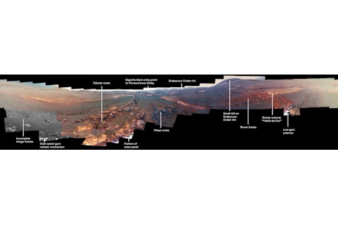 An annotated version of Opportunity's final panorama. (Credit: NASA/JPL-Caltech/Cornell/ASU)