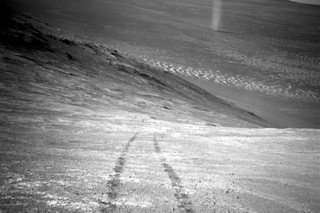 In 2014, Opportunity snapped this image of its own late-afternoon shadow. (Credit:NASA/JPL-Caltech)