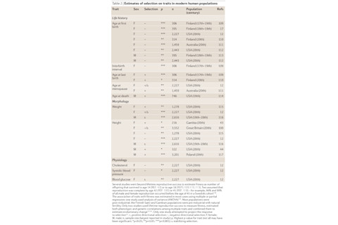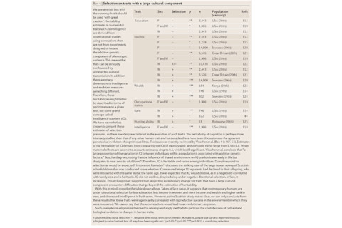 In Shall the Religious Inherit the Earth? Eric Kaufmann notes that it is in the most secular nations that the fertility gap between the religious and irreligious is greatest, and therefore selection for religiosity would be strongest in nations such as Sweden, not Saudi Arabia. But as a practical matter biologically driven shifts in trait value in this case pales in comparison to the effect of strong cultural norms for religiosity. Below are two of the topline tables which show the traits which are currently subject to natural selection. A + sign indicates that there is natural selection for higher values of the trait, and a - sign the inverse. An s indicates stabilizing selection, which tells you that median values have higher fitnesses than the extremes. The number of stars is proportional to statistical significance.