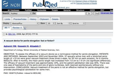 "OBJECTIVE: To assess the efficacy of a vacuum device as a noninvasive method for penile elongation. PATIENTS AND METHODS: Between September 2003 and November 2004, 37 sexually active men with a stretched penis length of <10 cm were given vacuum treatment three times a week, for 20 min on each occasion, for 6 months. RESULTS: After 6 months, the mean penile length had increased from 7.6 cm to 7.9 cm (no significant difference). The efficacy of vacuum treatment was approximately 10%, and the patient satisfaction rate was 30%. There was one case of haematoma of the penis and one of glans numbness, both resolved spontaneously without any intervention. CONCLUSION: Vacuum treatment of the penis is not an effective method for penile elongation, but provides psychological satisfaction for some men."