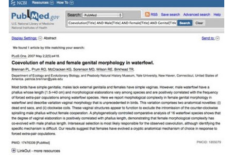 Coevolution of male and female genital morphology in waterfowl.