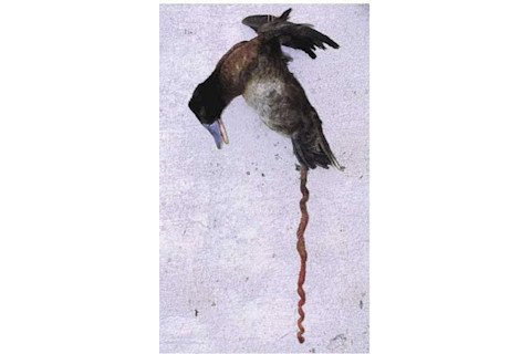 "Surprisingly few birds have penises, but among those that do, the Argentine lake duck (Oxyura vittata) tops the bill - the penis of this small stifftail duck from South America is shaped like a corkscrew and, at almost half a metre long, is the largest of any bird measured so far. Factors responsible for the evolution of this remarkable organ could include runaway selection, whereby drakes with longer penises gain dominance and copulate with more females, or preference by females for drakes with longer and more decorated penises."