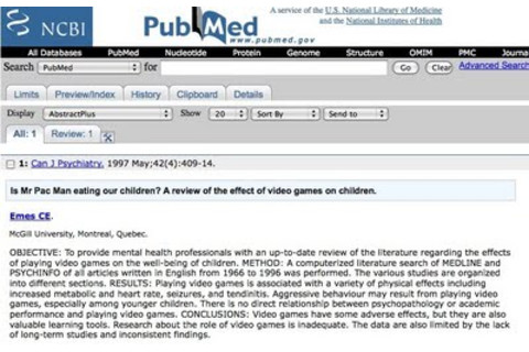 "OBJECTIVE: To provide mental health professionals with an up-to-date review of the literature regarding the effects of playing video games on the well-being of children... ...RESULTS: Playing video games is associated with a variety of physical effects including increased metabolic and heart rate, seizures, and tendinitis. Aggressive behaviour may result from playing video games, especially among younger children. There is no direct relationship between psychopathology or academic performance and playing video games. CONCLUSIONS: Video games have some adverse effects, but they are also valuable learning tools. Research about the role of video games is inadequate. The data are also limited by the lack of long-term studies and inconsistent findings."