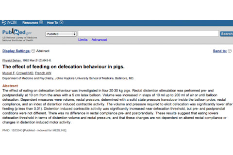 Related content: Discoblog: NCBI ROFL: This little piggy went “Wee! Wee! Wee!” all while conducting electricity. Discoblog: NCBI ROFL: Pigs learn what a mirror image represents and use it to obtain information Discoblog: NCBI ROFL: The locomotion of dairy cows on concrete floors that are dry, wet, or covered with a slurry of excreta. NCBI ROFL. Real Articles. Funny Subjects. Read our FAQ!
