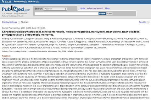 Chronoastrobiology: proposal, nine conferences, heliogeomagnetics, transyears, near-weeks, near-decades, phylogenetic and ontogenetic memories. "Chronoastrobiology: are we at the threshold of a new science? Is there a critical mass for scientific research?" A simple photograph of the planet earth from outer space was one of the greatest contributions of space exploration. It drove home in a glance that human survival depends upon the wobbly dynamics in a thin and fragile skin of water and gas that covers a small globe in a mostly cold and vast universe. This image raised the stakes in understanding our place in that universe, in finding out where we came from and in choosing a path for survival. Since that landmark photograph was taken, new astronomical and biomedical information and growing computer power have been revealing that organic life, including human life, is and has been connected to invisible (non-photic) forces, in that vast universe in some surprising ways. Every cell in our body is bathed in an external and internal environment of fluctuating magnetism. It is becoming clear that the fluctuations are primarily caused by an intimate and systematic interplay between forces within the bowels of the earth--which the great physician and father of magnetism William Gilbert called a 'small magnet'--and the thermonuclear turbulence within the sun, an enormously larger magnet than the earth, acting upon organisms, which are minuscule magnets. It follows and is also increasingly apparent that these external fluctuations in magnetic fields can affect virtually every circuit in the biological machinery to a lesser or greater degree, depending both on the particular biological system and on the particular properties of the magnetic fluctuations. The development of high technology instruments and computer power, already used to visualize the human heart and brain, is furthermore making it obvious that there is a statistically predictable time structure to the fluctuations in the sun's thermonuclear turbulence and thus to its magnetic interactions with the earth's own magnetic field and hence a time structure to the magnetic fields in organisms. Likewise in humans, and in at least those other species that have been studied, computer power has enabled us to discover statistically defined endogenous physiological rhythms and further direct effects that are associated with these invisible geo- and heliomagnetic cycles. Thus, what once might have been dismissed as noise in both magnetic and physiological data does in fact have structure. And we may be at the threshold of understanding the biological and medical meaning and consequences of these patterns and biological-astronomical linkages as well. Structures in time are called chronomes; their mapping in us and around us is called chronomics. The scientific study of chronomes is chronobiology. And the scientific study of all aspects of biology related to the cosmos has been called astrobiology. Hence we may dub the new study of time structures in biology with regard to influences from cosmo- helio- and geomagnetic rhythms chronoastrobiology. It has, of course, been understood for centuries that the movements of the earth in relation to the sun produce seasonal and daily cycles in light energy and that these have had profound effects on the evolution of life. It is now emerging that rhythmic events generated from within the sun itself, as a large turbulent magnet in its own right, can have direct effects upon life on earth. Moreover, comparative studies of diverse species indicate that there have also been ancient evolutionary effects shaping the endogenous chronomic physiological characteristics of life. Thus the rhythms of the sun can affect us not only directly, but also indirectly through the chronomic patterns that solar magnetic rhythms have created within our physiology in the remote past. For example, we can document the direct exogenous effects of given specific solar wind events upon human blood pressure and heart rate. We also have evidence of endogenous internal rhythms in blood pressure and heart rate that are close to but not identical to the period length of rhythms in the solar wind. These were installed genetically by natural selection at some time in the distant geological past. This interpretive model of the data makes the prediction that the internal and external influences on heart rate and blood pressure can reinforce or cancel each other out at different times. A study of extensive clinical and physiological data shows that the interpretive model is robust and that internal and external effects are indeed augmentative at a statistically significant level. Chronoastrobiological studies are contributing to basic science--that is, our understanding is being expanded as we recognize heretofore unelaborated linkages of life to the complex dynamics of the sun, and even to heretofore unelaborated evolutionary phenomena. Once, one might have thought of solar storms as mere transient 'perturbations' to biology, with no lasting importance. Now we are on the brink of understanding that solar turbulences have played a role in shaping endogenous physiological chronomes. There is even documentation for correlations between solar magnetic cycles and psychological swings, eras of belligerence and of certain expressions of sacred or religious feelings. Chronoastrobiology can surely contribute to practical applications as well as to basic science. It can help develop refinements in our ability to live safely in outer space, where for example at the distance of the moon the magnetic influences of the sun will have an effect upon humans unshielded by the earth's native magnetic field. We should be better able to understand these influences as physiological and mechanical challenges, and to improve our estimations of the effects of exposure. Chronoastrobiology moreover holds great promise in broadening our perspectives and powers in medicin