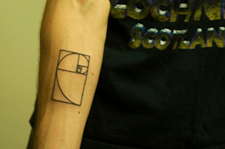 Explore the concept of the golden spiral and its rough approximation, showcasing its artistic representation at the Science Tattoo Emporium.