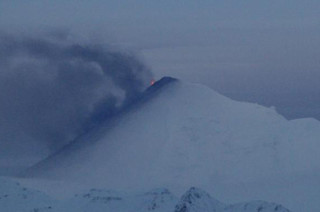 The lava fountain at Pavlof during the eruption that started on November 12, 2014. Image: Carol Damberg / AVO. It has been a fairly quiet year for the volcanoes of Alaska. A few have rumbled but none have really had an eruption that caught everyone's attention like recent events at Veniaminof, Redoubt or Kasatochi. It appears that Pavlof might be trying to make up for some of that lost time as a new eruption has started at the volcano. The Alaska Volcano Observatory is reporting ash reaching ~2.7 km (9,000 feet) and images of the volcano taken from Cold Bay clearly show a lava fountain (see above) coming from the most recently active vent. Seismicity remains high at the volcano, suggesting that the eruption isn't likely to stop immediately and visibility is touch and go with low cloud cover. This is the second bout of lava fountaining that Pavlof has experienced this year. The first set of eruptions started in late May and went on until June with a lava flow that snaked down the side of the volcano almost 5 km (3 miles). However, by the end of July, the alert status at Pavlof was lowered to Green after seismicity ended. This new activity isn't abnormal for Pavlof, where the volcano takes breaks that might last a few months between new eruptions. Pavlof rejoins Shishaldin and Cleveland as the only Aleutian volcanoes on elevated alert status right now. There is no AVO webcam pointed at Pavlof, but you can check out the FAA weathercam located in Cold Bay to catch a glimpse.
