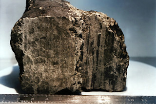 A potato-sized lump of 4-billion-year-old, grayish-green rock from Mars, ALH84001 fell to Earth some 13,000 years ago. Researchers found it in the Allan Hills region of Antarctica on a meteorite-hunting expedition in 1984, and brought to the Meteorite Processing Laboratory of the Johnson Space Center (JSC), where the rock’s martian origin was discovered almost a decade later in 1993.