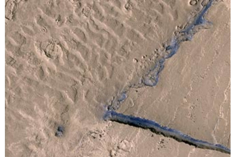 Late last year, NASA released results that indicated a strong possibility of liquid water on Mars. Gullies formed in the steep sides of craters looked very much like liquid water had erupted from underground, evaporated, and left a deposit of minerals behind. The features were bright, veined streaks that appeared in images. Now, though, that's being rethought. New evidence indicates that the deposits may be from dry flows; basically minor landslides. As the scientists themselves say in their paper (subscription required):