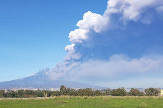 A new vent opened today on Etna in Sicily with lava flows and an ash plume from the new vent near the Southeast Crater. The eruption started after over 100 earthquakes up to M4 rattled the volcano on December 24. People (mostly skiers) on the volcano were evacuated as the eruption began. The ash plume from the eruption prompted the airspace around Catania to close as well. From the look of the ash plume, some is being produced by the eruption but part of the plume may be coming from the interaction of lava and snow on the slopes of the volcano.