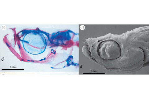 Some appear to be shrunken versions of typical species, smaller but identical in proportions. Others have achieved a tiny size by stunting their growth so they effectively become sexually mature larvae. It's a phenomenon called "paedomorphosis" and species that have taken this route include the world's smallest vertebrate - Paedocypris progenetica, just 10 millimetres at its largest size. D.dracula, while larger, has taken this developmental stunting to an extreme and ends up with fewer bones than any of its close relatives.
