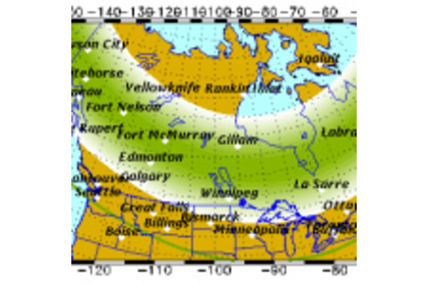 Weather permitting, highly active auroral displays will be visible overhead from Inuvik, Yellowknife, Rankin and Igaluit to Juneau, Edmonton, Winnipeg, Thunder Bay and Sept-Iles, and visible low on the horizon from Seattle, Des Moines, Chicago, Cleveland, Boston, and Halifax.