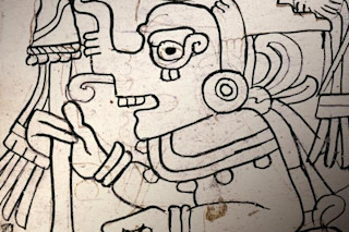 The Codex itself is composed of 11 figures, one to each page. Each figure faces left and is armed with a weapon; many grasp a chain tied to the neck of a prisoner. The Codex was likely used to track the movements of Venus in the sky, as the Maya based their calendar off the planet's movements. A series of markings down the left side of the page and numbers on the top tracked Venus' movements in the sky and marked its progress through various positions, each meant to foreshadow certain events. Venus was a harbinger of unfortunate events for the Maya, hence the foreboding demeanor of the drawings. In all, the calendar contained within spans 104 years, or 13 synodic cycles of Venus — the time it takes to come back to the same position in the night sky. The Grolier Codex breaks down each cycle into various phases, each associated with different events, and provided a means of organizing and predicting their cycle of rituals. The pages are in poor condition — only the top two-thirds or so remains of each, and the bottoms are water damaged. They are torn loose from the binding that once held them, and nine of the original 20 pages have gone missing.