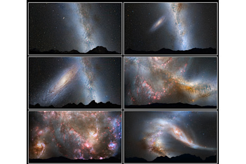 This illustrated sequence of the future future Milky Way/Andromeda collision starts with present day and unfolds over 4 billion years until our galaxy becomes warped. Credit: ((NASA/ESA/Z. Levay and R. van der Marel /STSCI/T. Hallas/and A. Mellinger)