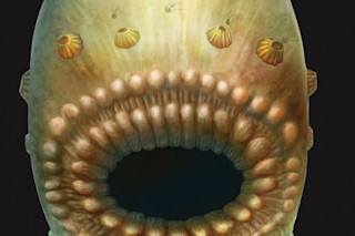 But back to Saccorhytus. So far, this is the earliest chronologically, and the most primitive, deuterostome known to science. It was about a millimeter in both length and height and probably hung out on the seabed. Its most striking features are its mouth, which is large for its body size, and structures that look like tiny volcanoes all over its sack-like body. Researchers believe these mini-cones may have flushed out the water Saccorhytus took in as it ate, making them possible precursors to fish gills. Despite its size (a half-dozen of them could have had a dinner party on a grain of rice), Saccorhytus may well turn out to be massively significant to our understanding of how and when life developed on Earth. It comes from a time for which we have few fossils, and much of what we think we know about this period is based on molecular clock modeling. Grossly oversimplified, that's a way of deducing the timeframe for a common ancestor by looking at differences between later species and counting backwards using a standard rate of mutation. Having Saccorhytus may mean that researchers can clean that clock, so to speak, for a more precise model.