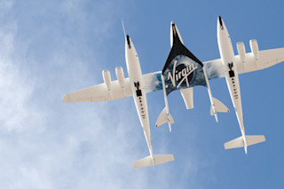 After it all whooshed into the clouds without incident, hundreds of schoolchildren cheered exuberantly, and UP Aerospace was celebrating its eighth successful launch in four years. The launch also marked a small victory for the politicians of New Mexico who created Spaceport America in 2004 with more than $200 million in taxpayer dollars as part of an ambitious plan to capitalize on new technology and stimulate economic growth. (Florida, California, Texas, and Oklahoma are also vying for a piece of the private space business.) UP Aerospace is the spaceport’s most active lessee, but state officials, who are now grappling with a projected $450 million shortfall for 2012, are pinning their investment hopes on the facility’s other, much bigger, and far more celebrated client. That would be Virgin Galactic (VG), the pet project of British billionaire Sir Richard Branson, whose nascent spaceliner may be just a year or two away from becoming the first private company to blast paying passengers into space.