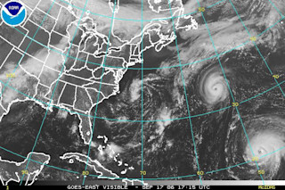 I've kinda missed hurricane blogging--even though you readers seem to enjoy fights over "intelligent design" much more. In any case, here are hurricanes Gordon and Helene, drifting harmlessly out to sea (though Helene might still have a few surprises in store). In general, it's been that kind of year, folks. All the really dramatic hurricane action has been in the Pacific. At this point, it's possible that the U.S. may get an entire year-long reprieve from major hurricane threats; that Ernesto will wind up being our worst 2006 landfalling storm. That certainly would be nice. Meanwhile, I'm finishing up in Seattle today with this event: