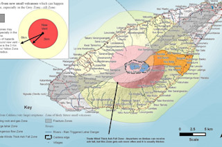 built an entirely new volcanic island inside the summit lake. The volcanic hazard map for Ambae (above) shows how much of the island is potentially threatened by pyroclastic flows, while the areas near the volcano could see lava bombs or other volcanic debris (known as tephra). Volcanic mudflows (lahars) are also a potential hazard for the eastern side of the island. Unlike other shield volcanoes like Kilaeau