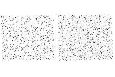 Question for you: which of these two images shows dots that are placed at random, and which does not?