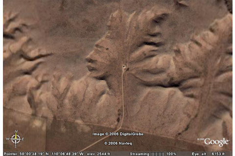 There have been lots of articles in the press about it recently, though this one in Australia appears most complete. It's natural, and just looks like a face (the iPod wire is actually an access road). The reason so many people have been emailing me is because in the past I have debunked claims of artificiality of such formations, having been attacked in the shower by an apparition once. What's funny to me about this is that I heard about this months ago. The Skeptic Friends Network was talking about it back in January, and the original find was in October 2005! I wonder why it took this long to get popular? I should have written about it then. Oh well. And for your Friday amusement, here are some more natural faces, too.