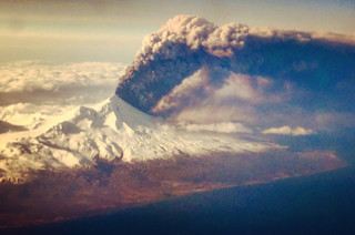 (see above) reached 6 kilometers (20,000 feet) to possibly as high as 9 kilometers (30,000 feet). There weren't many clear views of the eruption from ground-based webcams, but a passenger in a Penair flight actually captured the ash plume