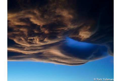 ©Tom Yulsman I leave you with this image – a closeup of the clouds shot with a telephoto lens. It shows detail in the cloud formation just before the second wave of sunset glow dissipated. It's something of a Rorschach test. I will leave it to you to interpret what you see here...