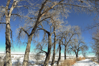 Cottonwoods line a trail in Niwot, CO. Photographed on 1/2/14. (Source: © Tom Yulsman) Even excluding the iPhone in my pocket, I carry a camera almost everywhere I go. And like many folks these days, I enjoy sharing what I come up with on social media. So on New Years day, I decided to try posting a photo a day — and then I figured that I should tailor what I do for ImaGeo, and post the results here. It's a bit daunting —because life happens and has a tendency to get in the way of creative endeavors. But I'm going to give it a go. The photo above is actually not my first installment in this new Pic of the Day feature. I shot another image on New Years day that I'll share soon. And it's not simply a photo. It's actually a mosaic of six images that I took with my iPhone (during a pause on a run) and then stitched together with awesome Autostitch app. I then brought it into Adobe Lightroom to tone down the vibrancy and saturation, which out of the camera were a bit over the top. What you see here is as close as I could come to what it looked like to my eyes. And that almost psychedelic aqua color along the horizon is what made me stop during my run and grab those six images. So, what about that blue and aqua color? The sky is blue because blue wavelengths of light are scattered more than other wavelengths by molecules of air in Earth's atmosphere. And that aqua color along the horizon? As this NASA explainer puts it: