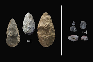 Which brings us to the second paper, in which Brooks and her team focus on those tools, as well as other artifacts. At the oldest Olorgesailie sites, the hominins present were making large handaxes in the Acheulean style (easily recognized by its teardrop shape). Of note: The tools were made from locally available rock.