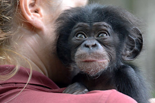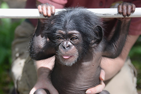 Keeva was born without complication and in good health, but her mother Carole didn’t adapt to her new role as nurturer, which forced zoo staff to remove Keeva and hand-rear the newborn. Staffers donned chimp-like clothing and provided 24/7 care in a behind-the-scenes area of the zoo’s chimp enclosure. They familiarized her with the sights, sounds and scent of the larger troop.