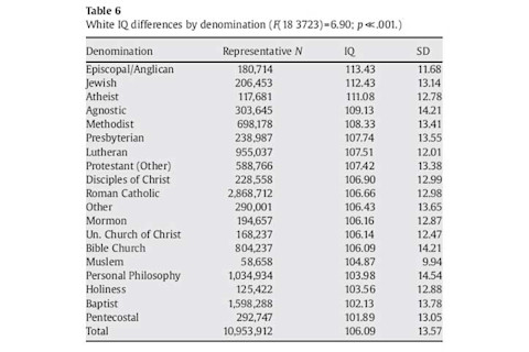 A correspondent forward me this paper, The intelligence-religiosity nexus: A representative study of white adolescent Americans: