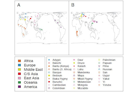 I don't want to make too much of this. The HGDP populations tend to be sampled from particularly distinctive groups consciously. But it does look like there is a stronger genetic clustering effect than one can predict from geography alone. That warrants investigation. I will leave the rest for comment.
