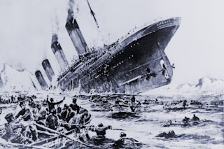 Sinking of the Titanic witnessed by survivors in lifeboats. May 15, 1912. (Credit: Everett Collection/Shutterstock)