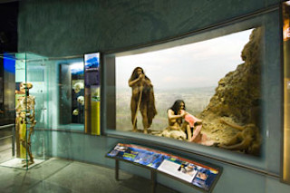 Several dioramas remain from the hall’s earlier incarnations, and they clearly retain their power to shock. (On opening day, a 4-year-old boy stared at a pair of 1.8-million-year-old Homo ergaster, protecting their half-butchered antelope from a vulture’s attack, and blurted: “They’re naked! I don’t want to look at them! They’re not even wearing underwear!”) Bones and artifacts still figure prominently as well. One display case contains the casts of an array of hominid skulls: the robust, massive-jawed 1.6-million-year-old Paranthropus robustus from Swartkrans, South Africa; the flat-faced 1.7-million-year-old Paranthropus boisei from East Turkana, Kenya; the tiny skull and fossilized brain of the 2.5-million-year-old Taung child, or Australopithecus africanus, found at Sterkfontein, South Africa. A note reminds us that between 3.5 and 1.5 million years ago, at least 11 different hominid species lived in Africa—many of them (like our notorious strolling couple) members of the genus Australopithecus, which went extinct about 1.4 million years ago.