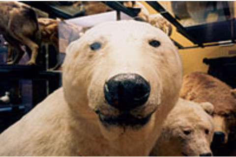 The polar bear is a powerful predator, but the Victorian taxidermists who stuffed this specimen endowed it with a benevolent smile. Human expressions grace many of the animals in the Rothschild Museum.