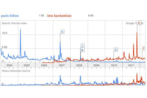 Kim Kardashian was at the White House Correspondents Association Dinner. Wow. But it made me wonder whatever happened to Paris Hilton? Did she drop off the face of the earth? Here's Google Trends: