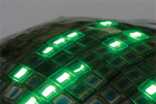 Organic light-emitting diodes (OLEDs) are not yet familiar technology, but many researchers think they'll play an important part in the next generation of electronics. The organic compounds in an OLED system emit light when an electric current is passed through them and need no backlight, which means they draw less power and can be thinner than a typical liquid crystal display (LCD) screen. But the real breakthrough in the current research is in the stretchy conductor underlying the OLEDs. The research group, led by Takao Someya, had previously demonstrated another version of the the stretchy conductor, which is made of carbon nanotubes and rubber. But researchers say that the new and improved version, described in a paper in Nature Materials, is much more conductive and can stretch to twice its original size.