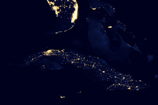 A satellite view of Cuba and Florida at night. (Source: NASA Worldview) Yesterday's announcement was historic: restoration of full diplomatic relations between the United States and Cuba. And that got me to thinking of how satellite imagery could contribute to public debate now swirling around the move. For 53 years, the U.S. embargo of Cuba, intended to help bring an end to the Cuban regime, has helped to stifle development there. This year, for example, the nation's economy grew at a paltry 1.4 percent, according to the government's no-doubt inflated figures. The embargo itself isn't the lone cause of economic distress. A rigid, centrally planned economy in one of the last remaining Communist nations on Earth shares the blame as well. Whichever factor plays the more important role, you can see the impact on Cuba in the image above based on data acquired by the Suomi NPP satellite in 2012. The Florida peninsula seems to point a bright finger toward the darker landmass to the south: Cuba. Florida's bright lights are a testament to the relative vibrancy of its economy. The densely populated urban corridor anchored by Miami on the east coast gives way to the graceful and well lit arc of the Florida Keys. Across the Straits of Florida, Havana, Cuba's capitol, is fairly obvious. But most of the rest of the country is quite dark compared to Florida, and even the small island of Jamaica to the south. The New York Times described Cuba's economic situation in a story today: