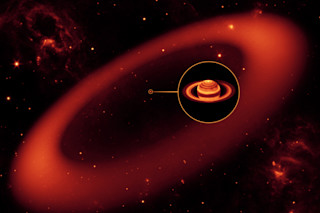 An artist's illustration shows the grand scale of the Phoebe ring. (Credit: NASA/JPL-Caltech/Keck) Think you know what Saturn looks like? Think again: the planet's outermost ring is the biggest planetary ring known to mankind, but because its black color blends in with the blackness of space, images of the planet fail to capture it. Now, scientists examining the ring in the infrared spectrum say it's even bigger than they thought — by nearly one-third.