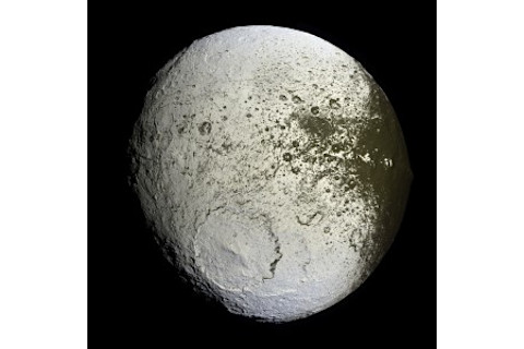 Cassini captured this false-color image of Iapetus. (Credit: NASA) In 2009, Astrophysicist Douglas Hamilton and his team discovered the so-called Phoebe ring using infrared imagery from the Spitzer Space Telescope, and it was literally a big discovery. If Saturn’s famous rings were toe rings, the Phoebe ring would be a monster truck tire, for a simple comparison. Although no one actually saw the Phoebe ring before 2009, it certainly made its presence known to astronomers on the surface of Saturn’s moon Iapetus, which looks like no other moon in the solar system. The surface of icy Iapetus is white on one side but black on the other. Scientists have long suspected that Iapetus became a two-faced moon because it’s pushing through a ring of dark particles that we can’t see. Like Earth’s moon, Iapetus shows the same face to its home planet at all times, so one side of Iapetus is constantly getting smacked with particles in its path — just like a car bumper that’s littered with bug splats after a long road trip. When in 2009 Phoebe was revealed, it was really only a cross-section view. As Hamilton told Wired, the original picture felt “not much bigger than a postage stamp.”