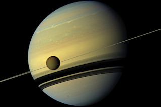 Astronomers found an entirely , Saturn’s largest moon, this year: a ribbon of exposed bedrock ice that wraps nearly halfway around the satellite. This unique feature came into view thanks to a recently developed analysis technique never before used on Titan.