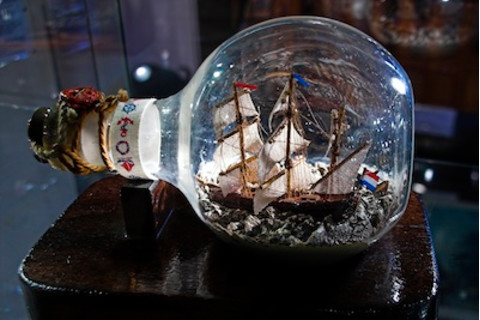 From my own experiences teaching science graduate students about writing--and suffering through ultradense powerpoint presentations--I've come up with a similar image: a ship in a bottle. If scientists have only 15 minutes to present a year's worth of research, or if some sadistic journalist challenges them to explain a paper in 500 words, many of them feel compelled to talk about every facet of the work. Just as a ship in a bottle has tiny portholes and capstans, articles and talks by scientists often include miniaturized representations of every twist, turn, and digression in a particular topic.