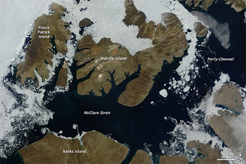 One of the biggest predictors of global warming is the retreat of sea ice in the high northern latitudes. As oceans warm, the ice will take longer to form in the winter, and retreat faster in the spring. Scientists, therefore, have been watching the ice north of Canada very carefully. What they're seeing isn't very hopeful.
